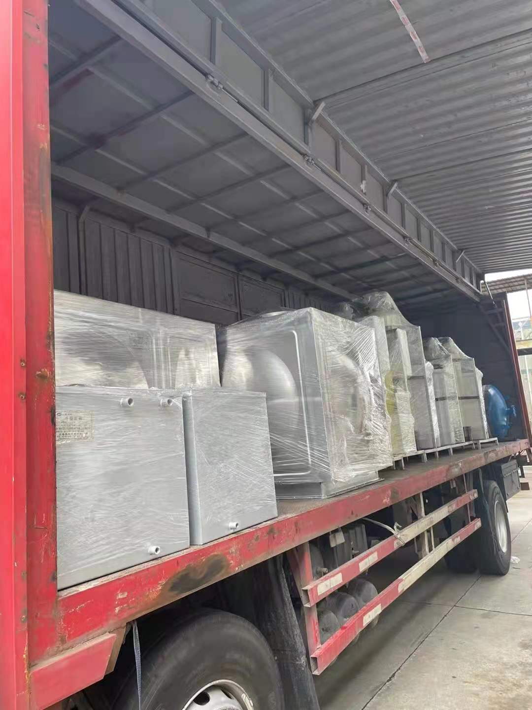 山東濟寧項目:一批全自動軟水器及智能加藥裝置和不銹鋼水箱裝車完成,上海奧棟質量保證!