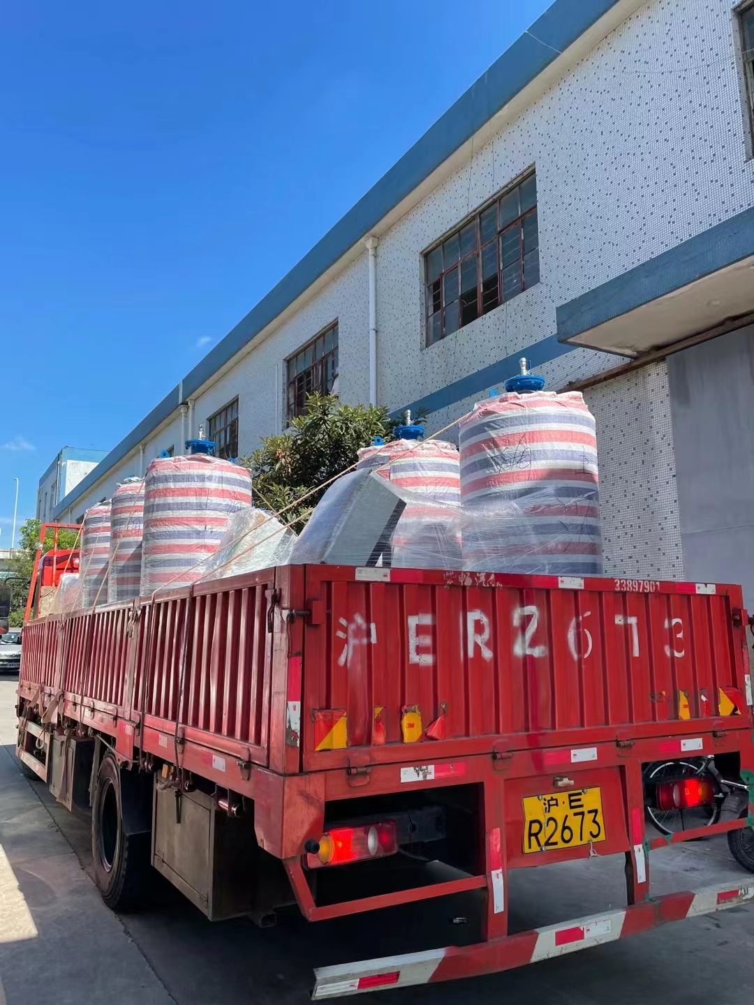 成都項目:一批智能砂濾裝置和不銹鋼水箱及加藥裝置裝車發貨完成,上海奧棟承諾必達!