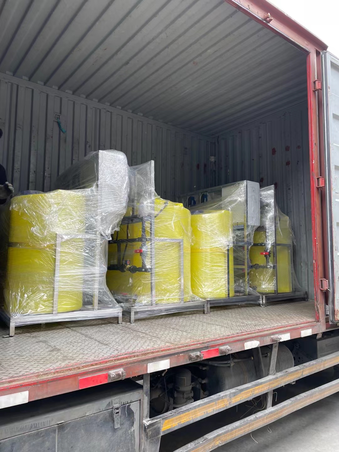 江蘇啟東項目、廣州項目:一批智能加藥裝置和不銹鋼水箱裝車發貨完成,上海奧棟承諾必達!2022揚帆起航