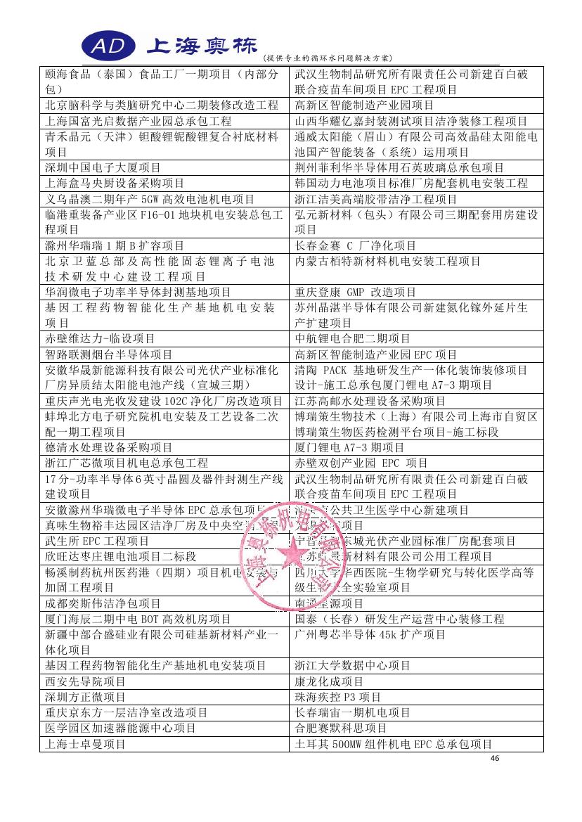 2023年上海奧棟合作項目清單