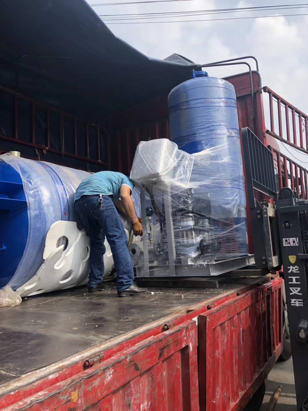 浙江海寧正泰三期項(xiàng)目:為了趕工期急客戶所急,一批定壓補(bǔ)水裝置及水處理設(shè)備安排專車送貨,同事們辛苦了!